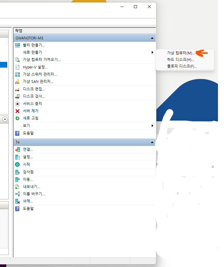우선 만드는 방법입니다. 새로 만들기 -> 가상 컴퓨터 누르고 1세대 만드는 것과 동일하게 진행합니다.