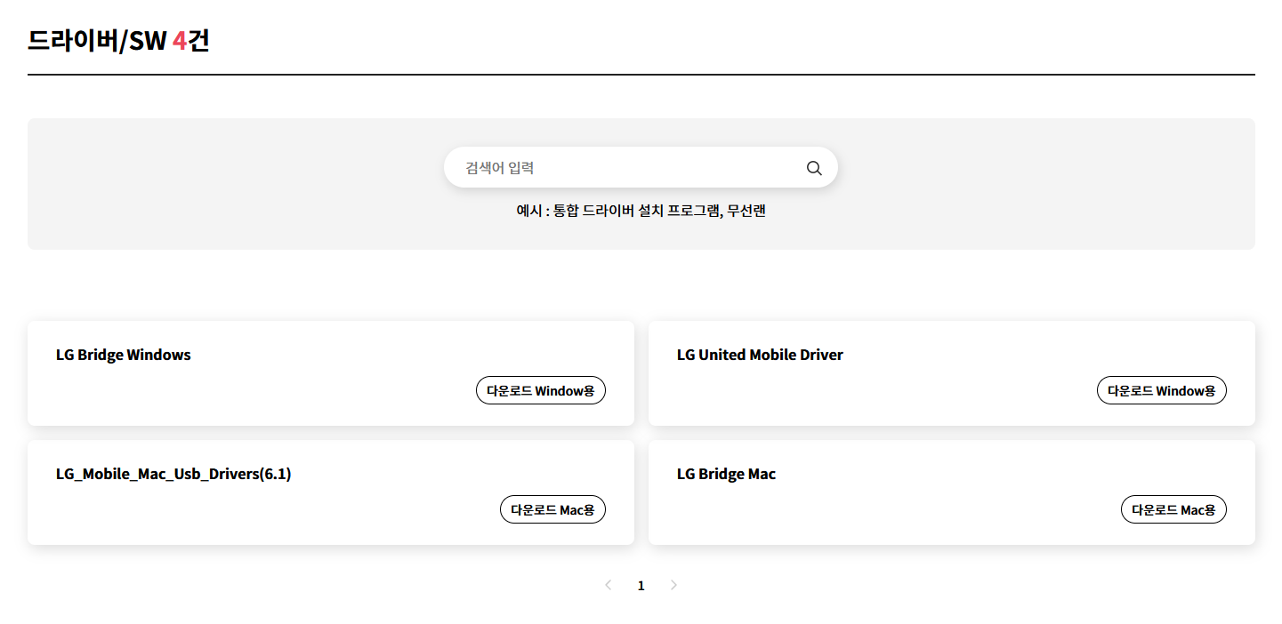 1. 드라이버가 없는 문제 - LG 브릿지 다운로드한 곳에 드라이버가 있습니다. 설치해 보세요.