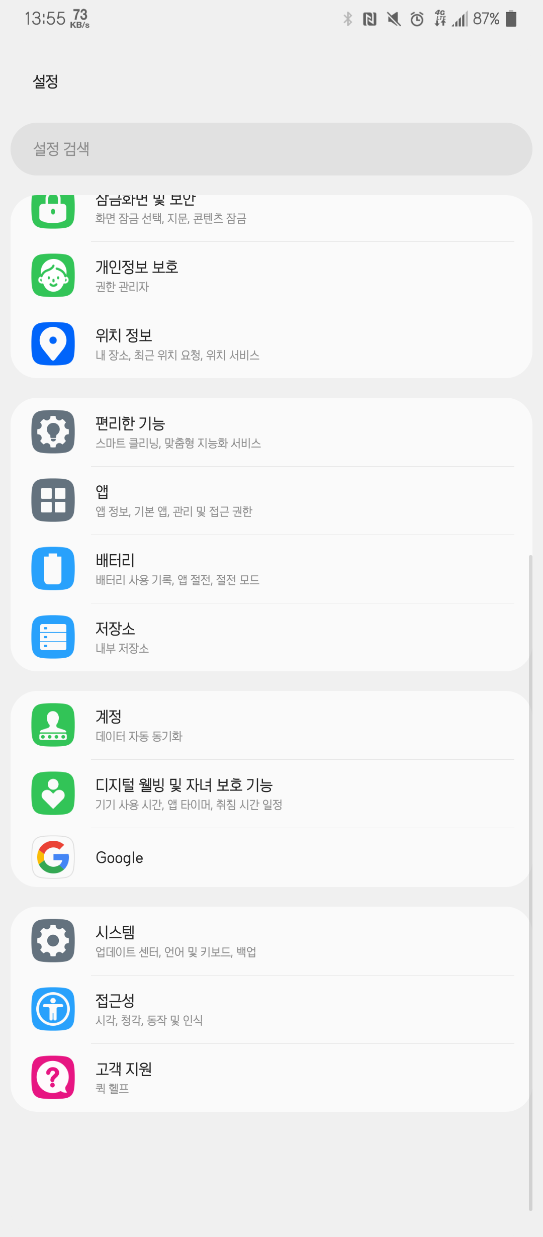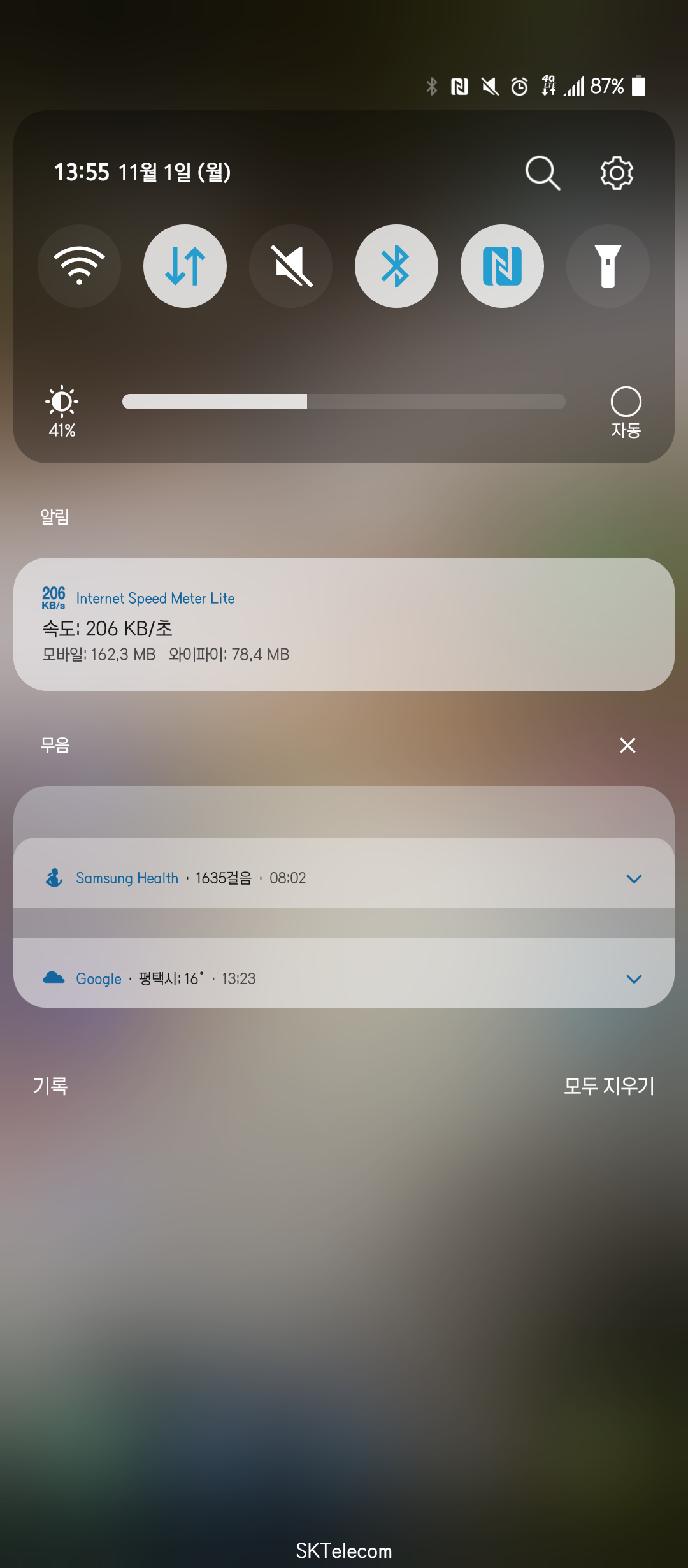 1. 상단바를 내려서 오른쪽 위에 있는 톱니바퀴를 눌러 설정에 들어갑니다.