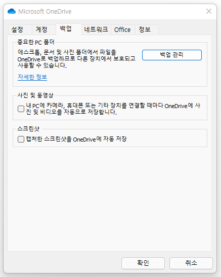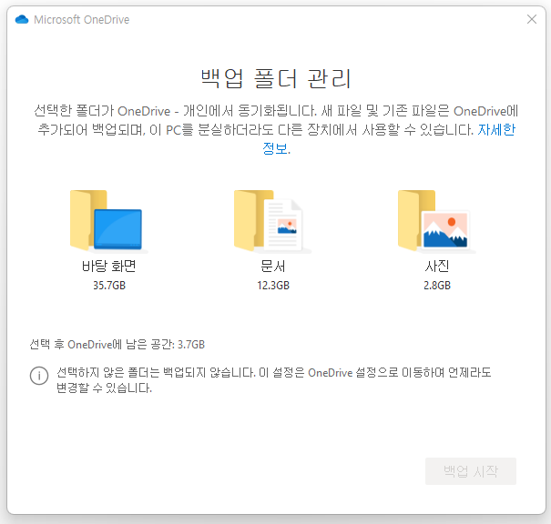 2. 백업 폴더 관리에서 선택을 모두 해제합니다.