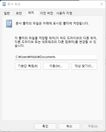 4. 경로가 OneDrive가 포함됐는지 확인합니다.