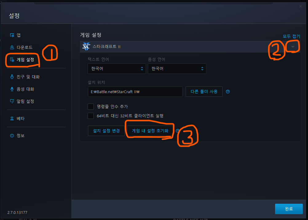 스타크래프트 2는 게임 설정이 서버에 저장이 되는 건지, 재설치를 해도 그대로더군요. 이때는 게임 내 설정을 초기화해주면 쉽게 해결됩니다.