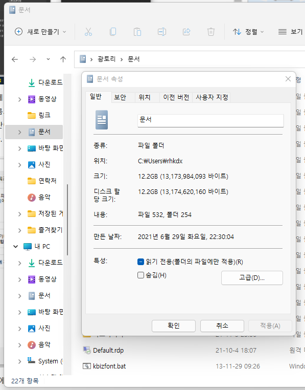 2. 왼쪽 사이드 바에서 문서를 오른쪽 클릭한 후, 속성에 들어갑니다.