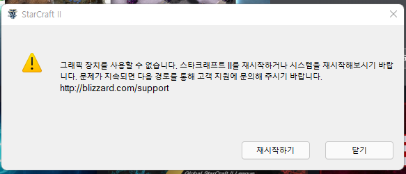 스타크래프트2 그래픽 장치를 사용할 수 없습니다 오류 해결방법