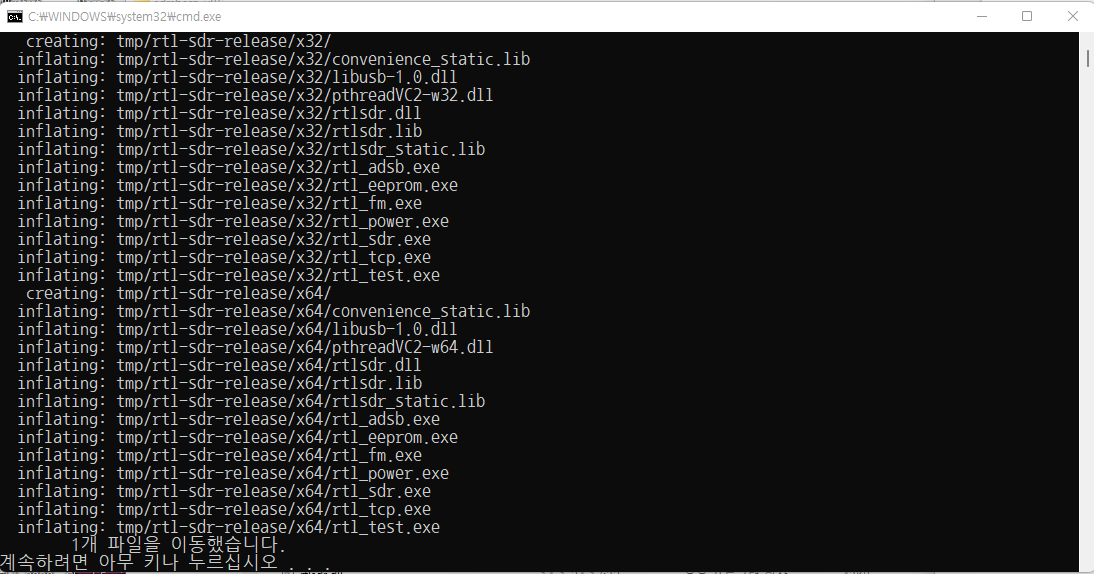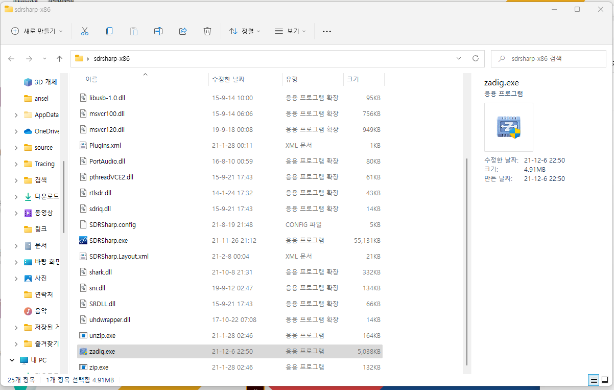 압축을 푼 폴더에 들어가서 'install-rtlsdr.bat'를 실행해 주세요.