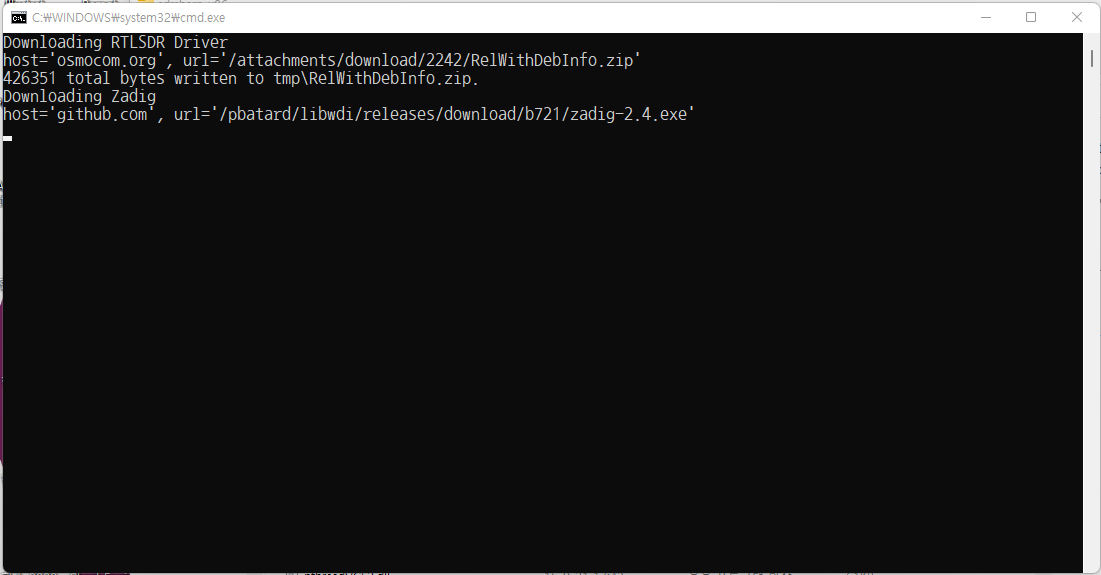 그러면 cmd 창이 나오면서 다운로드를 한 후, 아무 키를 눌러줍니다.