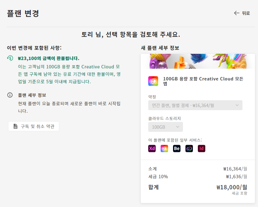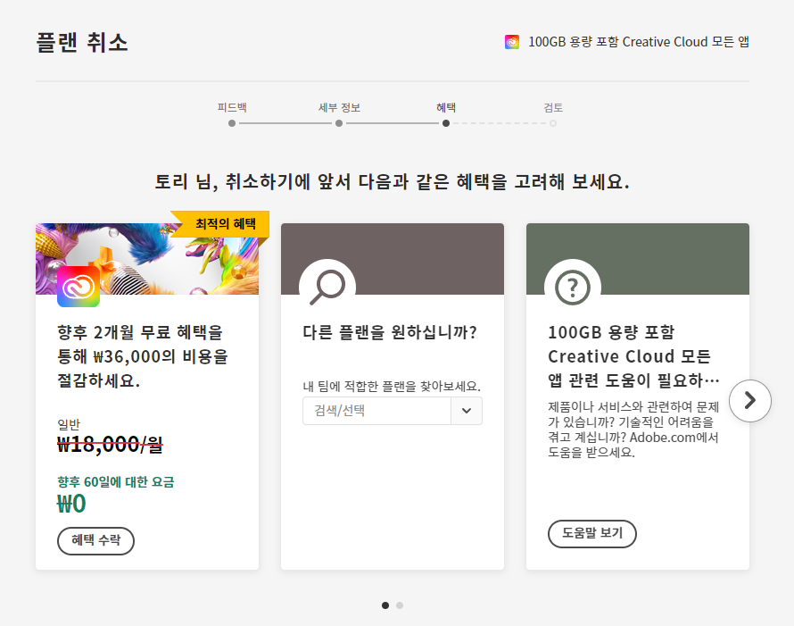 1. 다음 링크로 들어가서 취소를 해봅시다. https://account.adobe.com/plans