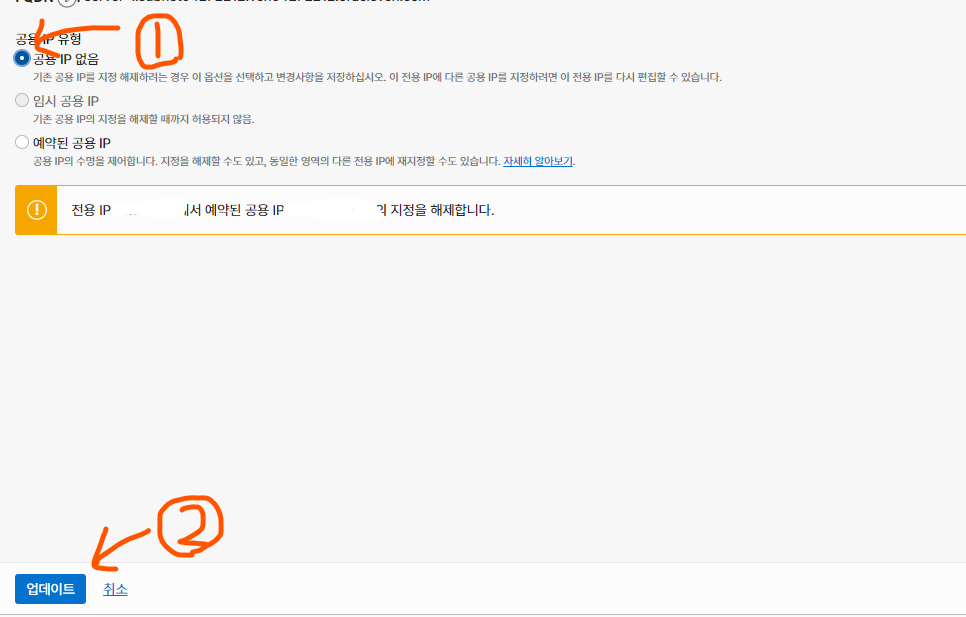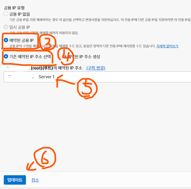 - 예약한 IP 주소를 선택하고, 업데이트를 눌러줍니다.
