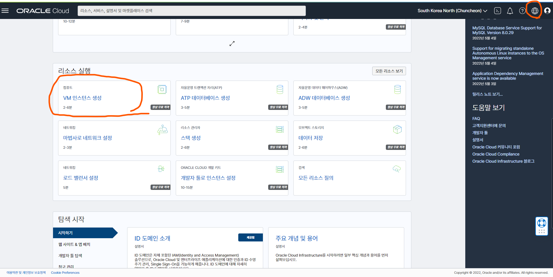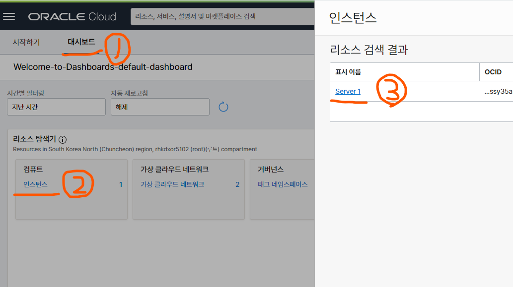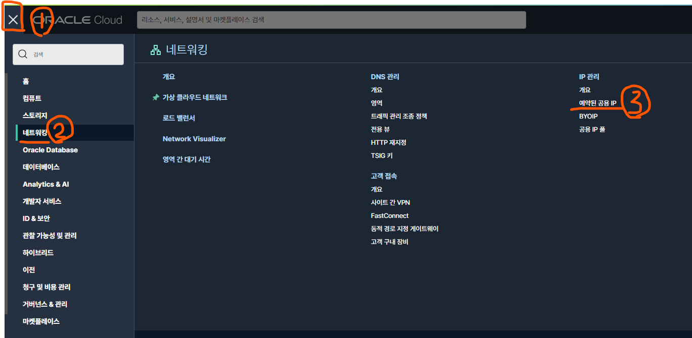 오라클 클라우드 메인 페이지로 이동한 후, 다음과 같이 이동해줍니다.
