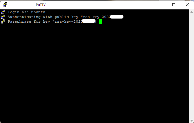 - 사용자 이름을 써 주세요. 우분투 기준 기본 계정의 이름은 'ubuntu' 입니다. 모르시는 분은 인스턴스 정보의 인스턴스 액세스 문단에 사용자 이름을 확인하세요.