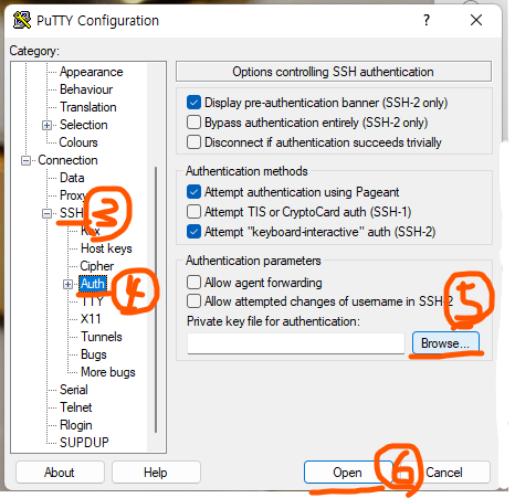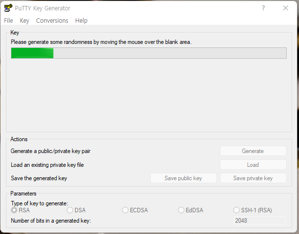 - 5번을 눌러 PuTTYgen으로 만들었던 파일을 선택해줍니다.