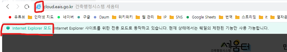 - 없다면 익스플로러 모드로 열 페이지의 URL 입력해 주세요.