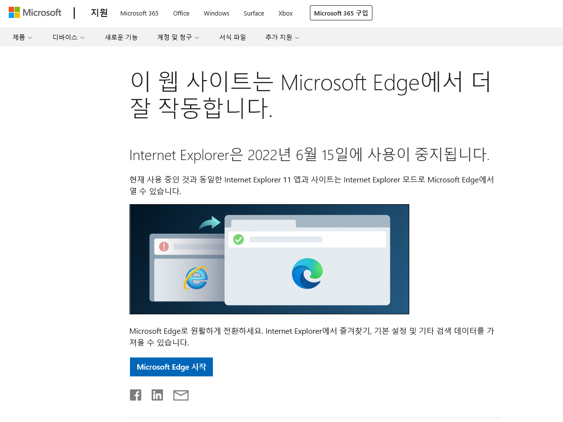 그래서 점유율이 많이 줄고, 다양한 브라우저를 지원하기 시작한 웹 사이트들이 많아진 지금(2022년)에 지원을 종료하기로 한 것입니다.