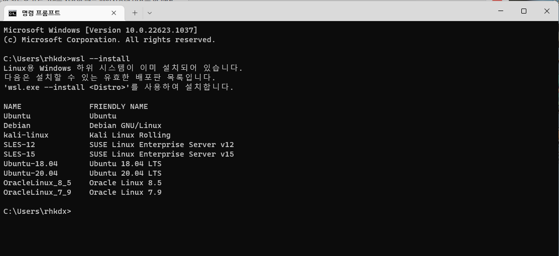 다음 명령어를 입력하여 설치할 수 있는 Linux 배포판을 선택해 주세요.
