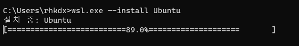 저는 우분투를 설치하기 위해서 다음 명령어를 입력했고, 설치가 진행되고 자동으로 켜지게 돼요.