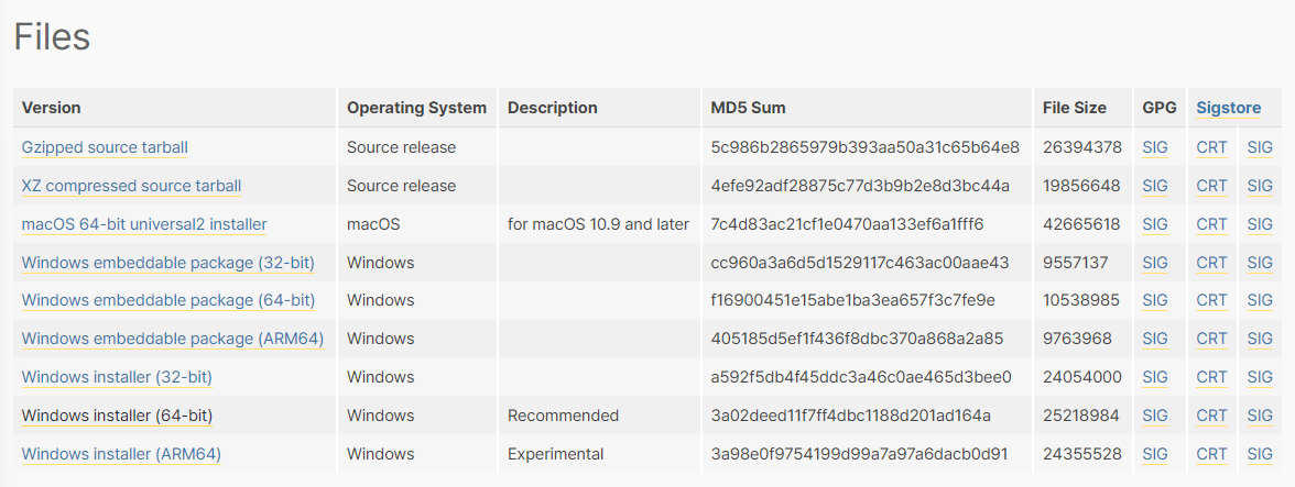 1. Python 홈페이지로 이동합니다. https://www.python.org/downloads/