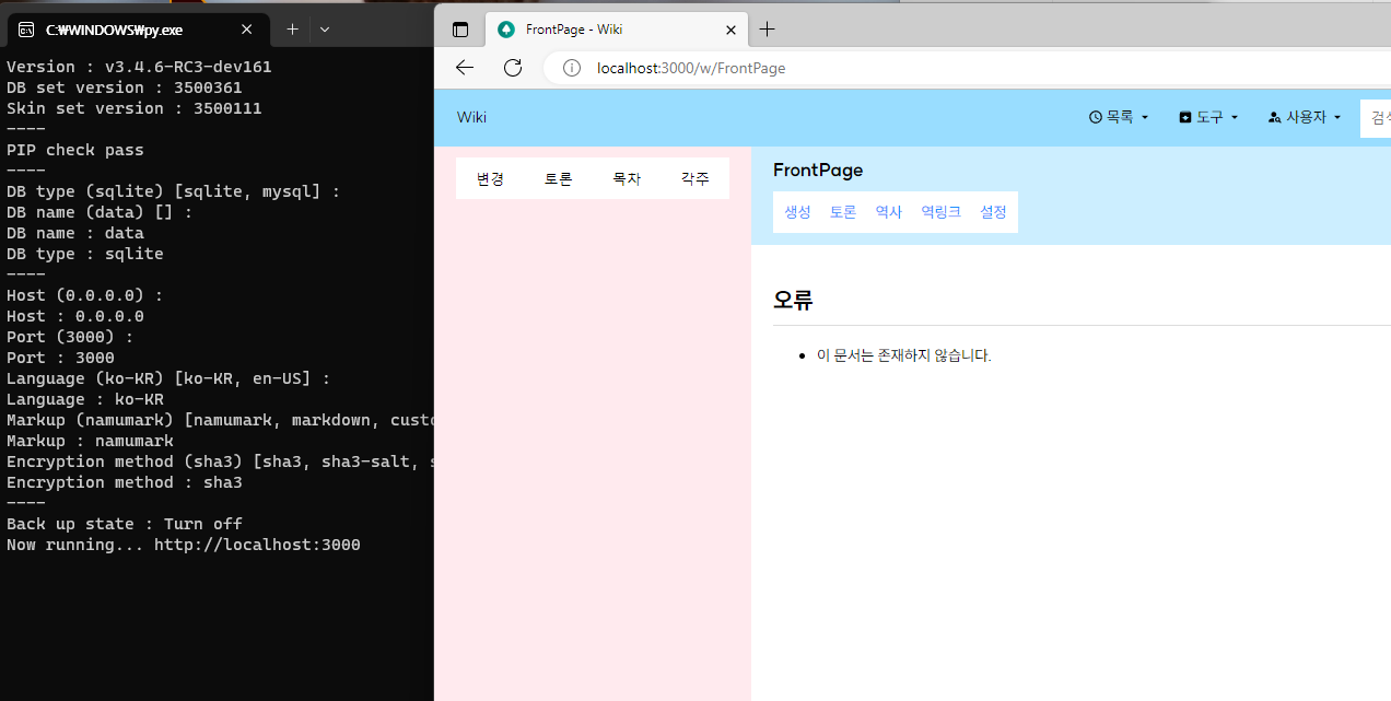 #위키 엔진 실행