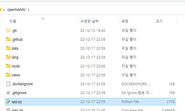 (저는 확장자 표시를 활성화했기 때문에 app.py입니다.)