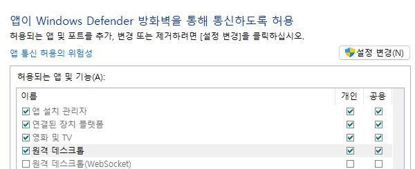 - 'Windows 방화벽에서 앱 허용'으로 이동