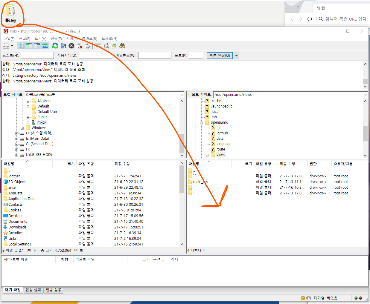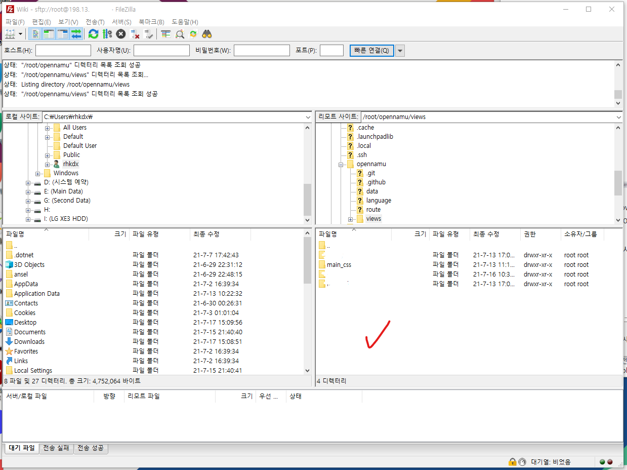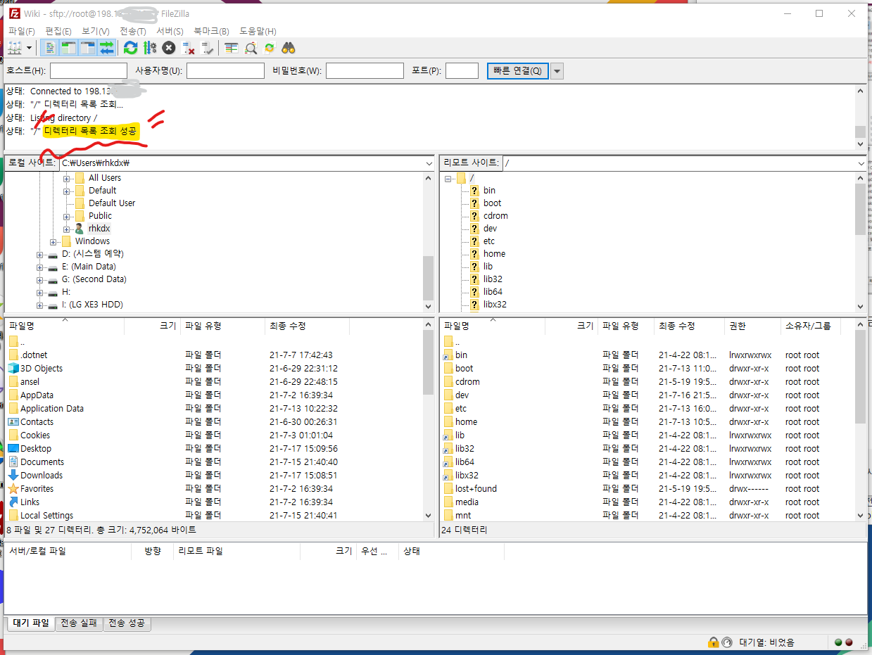 다시 파일질라에 들어갑니다.