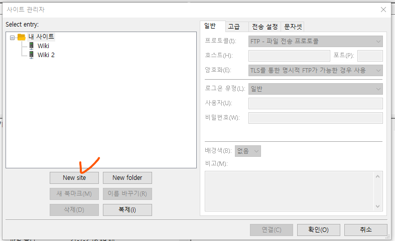 New site를 누릅니다.