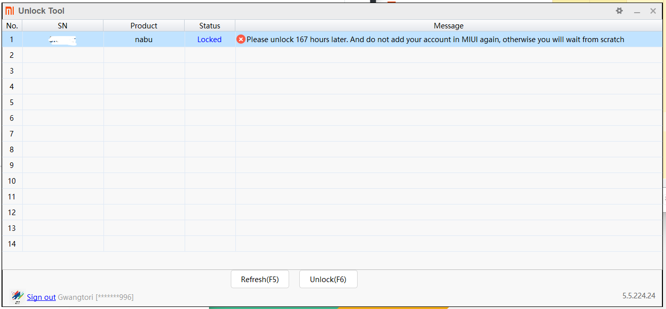 이제 167시간이 지나고 다시 시도해 보시면, 언락은 성공할 거에요.